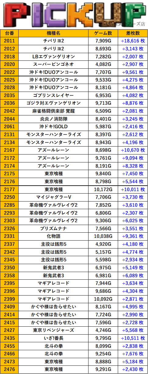 神奈川PIA横浜モアーズ店 過去の取材結果はこちら 取材日 2026年1月31日(土) 並びの人数 抽選59名 / 一般46名 内容 スロミュー七福神 Pickup箇所① Pickup箇所② Pickup箇所③ Pickup箇所④ Pickup箇所⑤ Pickup箇所⑥ Pickup箇所⑦ Pickup箇所⑧ Pickup箇所⑨ その他Pickup箇所 過去の取材結果はこちら