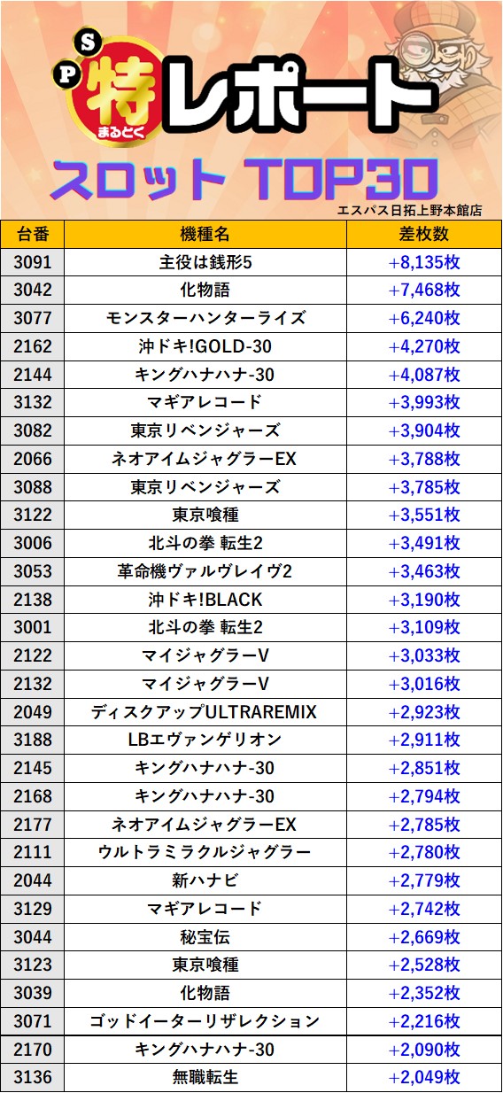 スロミューマル特レポートTOP30