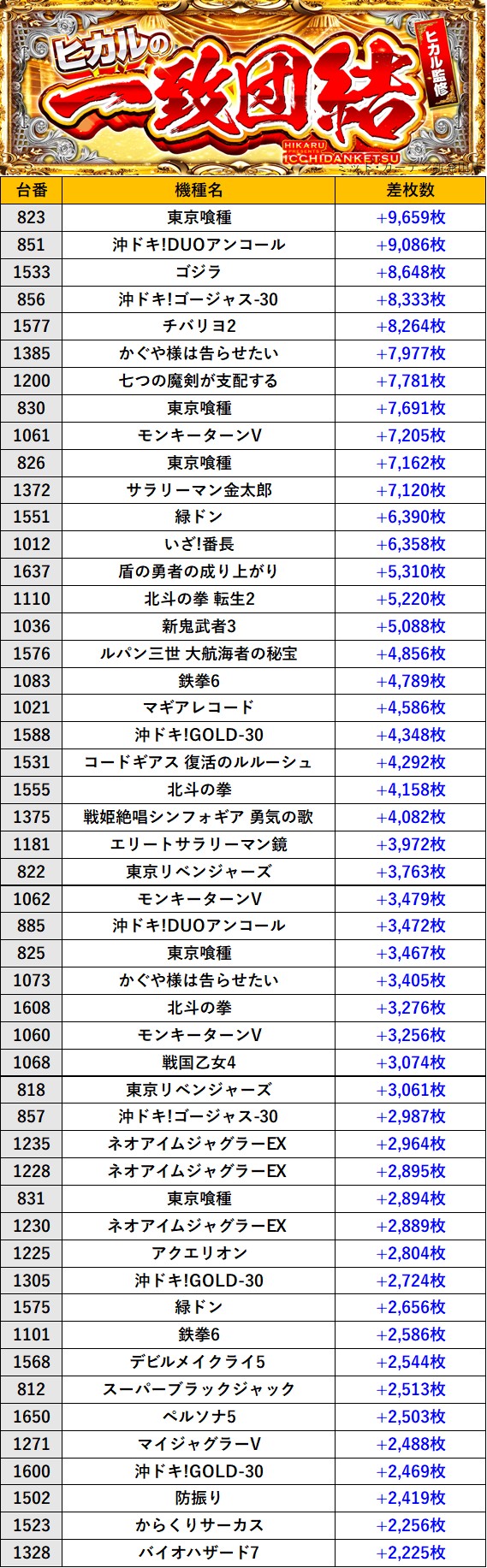 新潟ミッド・ガーデン新発田店 過去の取材結果はこちら 取材日 2026年1月17日(土) 並びの人数 抽選65名 / 一般84名 内容 🌓ヒカルの一致団結🌓 『ヒカルの一致団結』ランキング 過去の取材結果はこちら