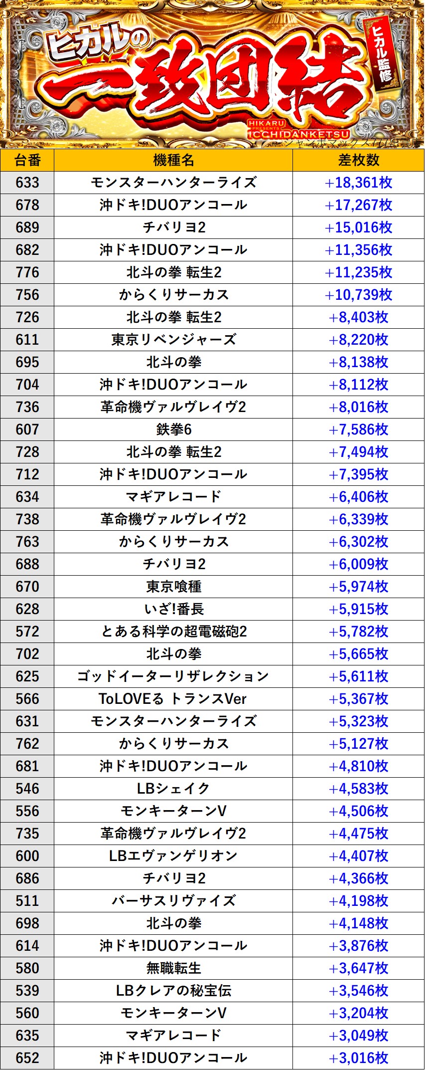 島根ジャンボマックス777出雲店 過去の取材結果はこちら 取材日 2026年1月17日(土) 並びの人数 抽選381名 / 一般45名 内容 🌓ヒカルの一致団結🌓 『ヒカルの一致団結』ランキング 過去の取材結果はこちら