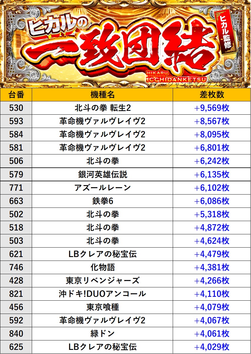鳥取ジャンボマックス888鳥取店 過去の取材結果はこちら 取材日 2026年1月17日(土) 並びの人数 抽選82名 / 一般104名 内容 🌓ヒカルの一致団結🌓 『ヒカルの一致団結』ランキング 過去の取材結果はこちら