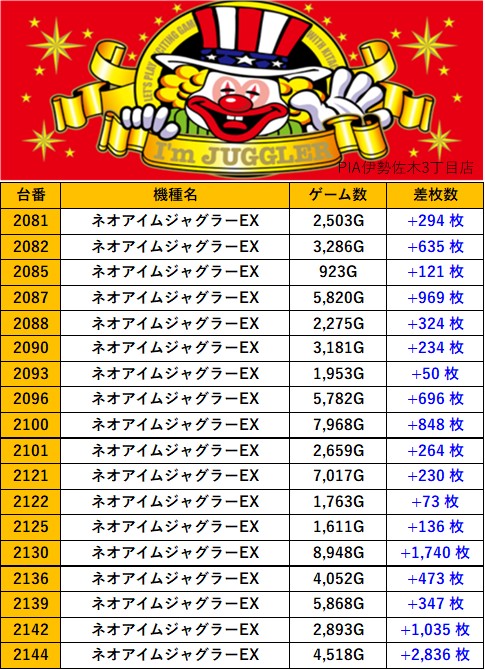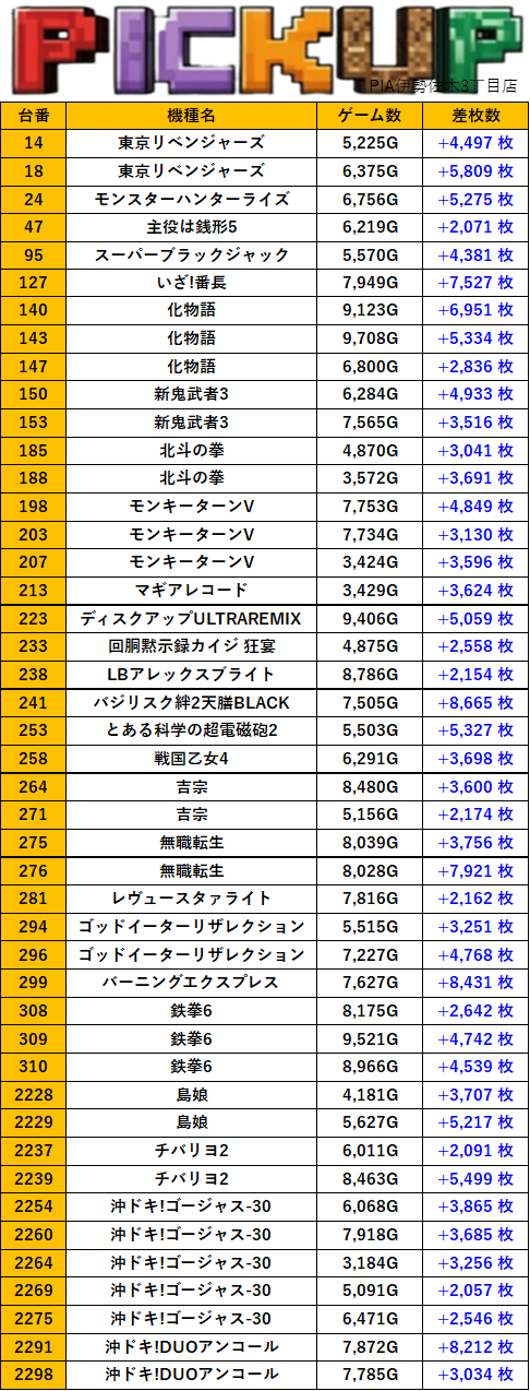 神奈川PIA伊勢佐木3丁目店 過去の取材結果はこちら 取材日 2026年1月10日(土) 並びの人数 抽選54名 / 一般78名 内容 スロミュー七福神 Pickup箇所① Pickup箇所② Pickup箇所③ Pickup箇所④ Pickup箇所⑤ Pickup箇所⑥ Pickup箇所⑦ その他Pickup箇所 過去の取材結果はこちら