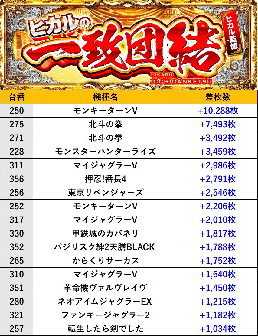 大阪いちえん本舗店 過去の取材結果はこちら 取材日 2026年1月25日(日) 並びの人数 抽選17名 / 一般45名 内容 🌓ヒカルの一致団結🌓 『ヒカルの一致団結』ランキング 過去の取材結果はこちら