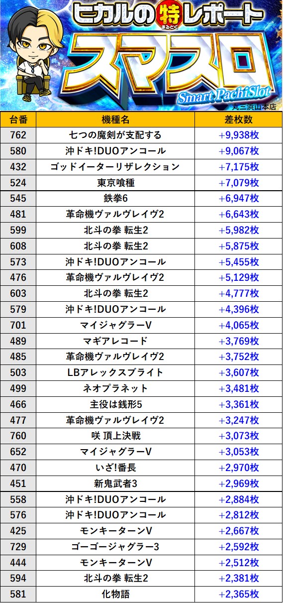 島根丸三浜山本店 過去の取材結果はこちら 取材日 2026年2月1日(日) 並びの人数 抽選18名 / 一般40名 内容 ヒカルのまるとくレポート(スマスロ取材) ヒカルのまるとくレポートランキング Pickup箇所 過去の取材結果はこちら