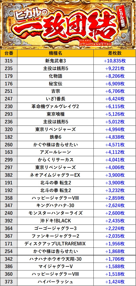 沖縄アムズエース具志川店 過去の取材結果はこちら 取材日 2026年1月10日(土) 並びの人数 抽選57名 / 一般15名 内容 🌓ヒカルの一致団結🌓 『ヒカルの一致団結』ランキング 過去の取材結果はこちら