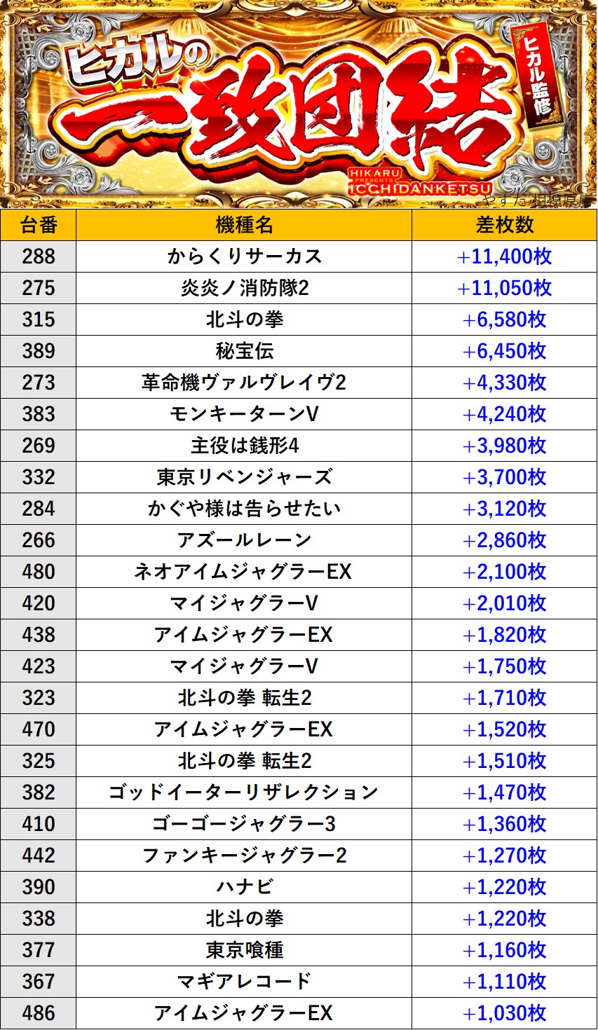 神奈川やすだ 相模原店 過去の取材結果はこちら 取材日 2026年3月3日(火) 並びの人数 抽選23名 / 一般6名 内容 🌓ヒカルの一致団結🌓 『ヒカルの一致団結』ランキング 過去の取材結果はこちら