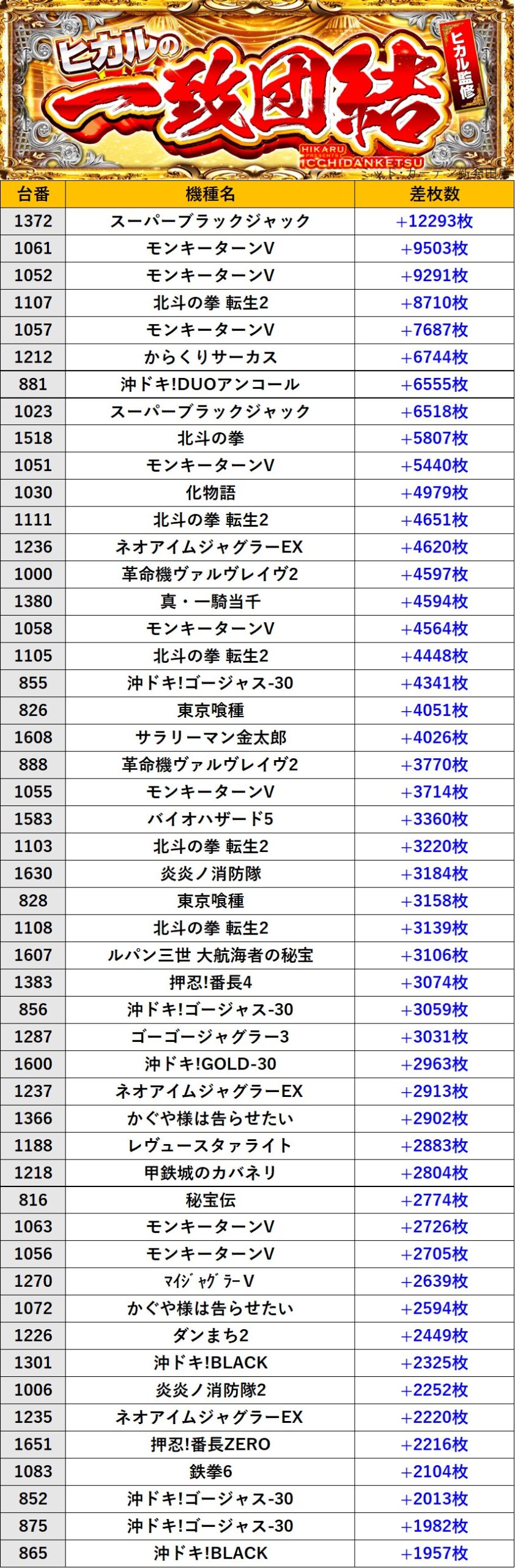 新潟ミッド・ガーデン新発田店 過去の取材結果はこちら 取材日 2026年2月15日(日) 並びの人数 抽選81名 / 一般54名 内容 🌓ヒカルの一致団結🌓 『ヒカルの一致団結』ランキング 過去の取材結果はこちら