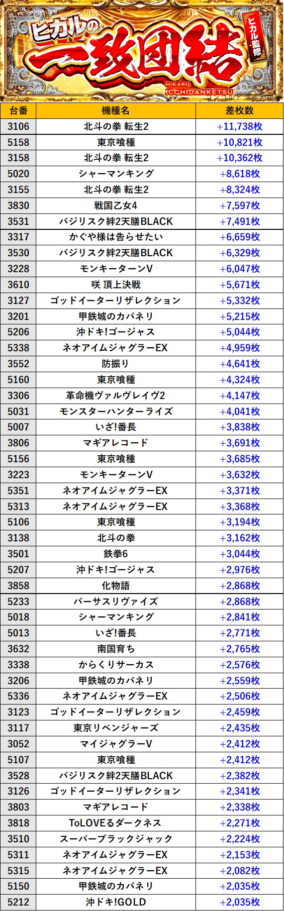 静岡コンコルド 清水大曲店 過去の取材結果はこちら 取材日 2026年3月7日(土) 並びの人数 抽選96名 / 一般213名 内容 🌓ヒカルの一致団結🌓 『ヒカルの一致団結』ランキング 過去の取材結果はこちら