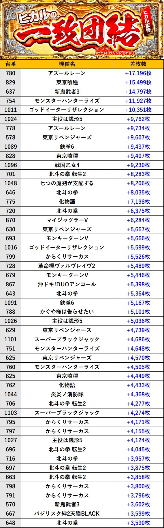 大阪HYPER ARROW美原店 過去の取材結果はこちら 取材日 2026年2月1日(日) 並びの人数 抽選383名 / 一般85名 内容 🌓ヒカルの一致団結🌓 『ヒカルの一致団結』ランキング 過去の取材結果はこちら