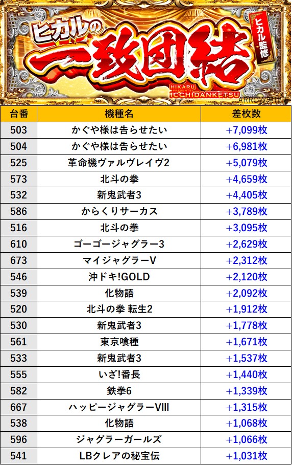 奈良ARROW天理店 過去の取材結果はこちら 取材日 2026年2月1日(日) 並びの人数 抽選36名 / 一般45名 内容 🌓ヒカルの一致団結🌓 『ヒカルの一致団結』ランキング 過去の取材結果はこちら