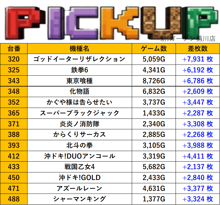 埼玉新!ガーデン桶川店 過去の取材結果はこちら 取材日 2026年2月1日(日) 並びの人数 抽選30名 / 一般50名 内容 スロミュー七福神 Pickup箇所① Pickup箇所② Pickup箇所③ Pickup箇所④ その他Pickup箇所 過去の取材結果はこちら