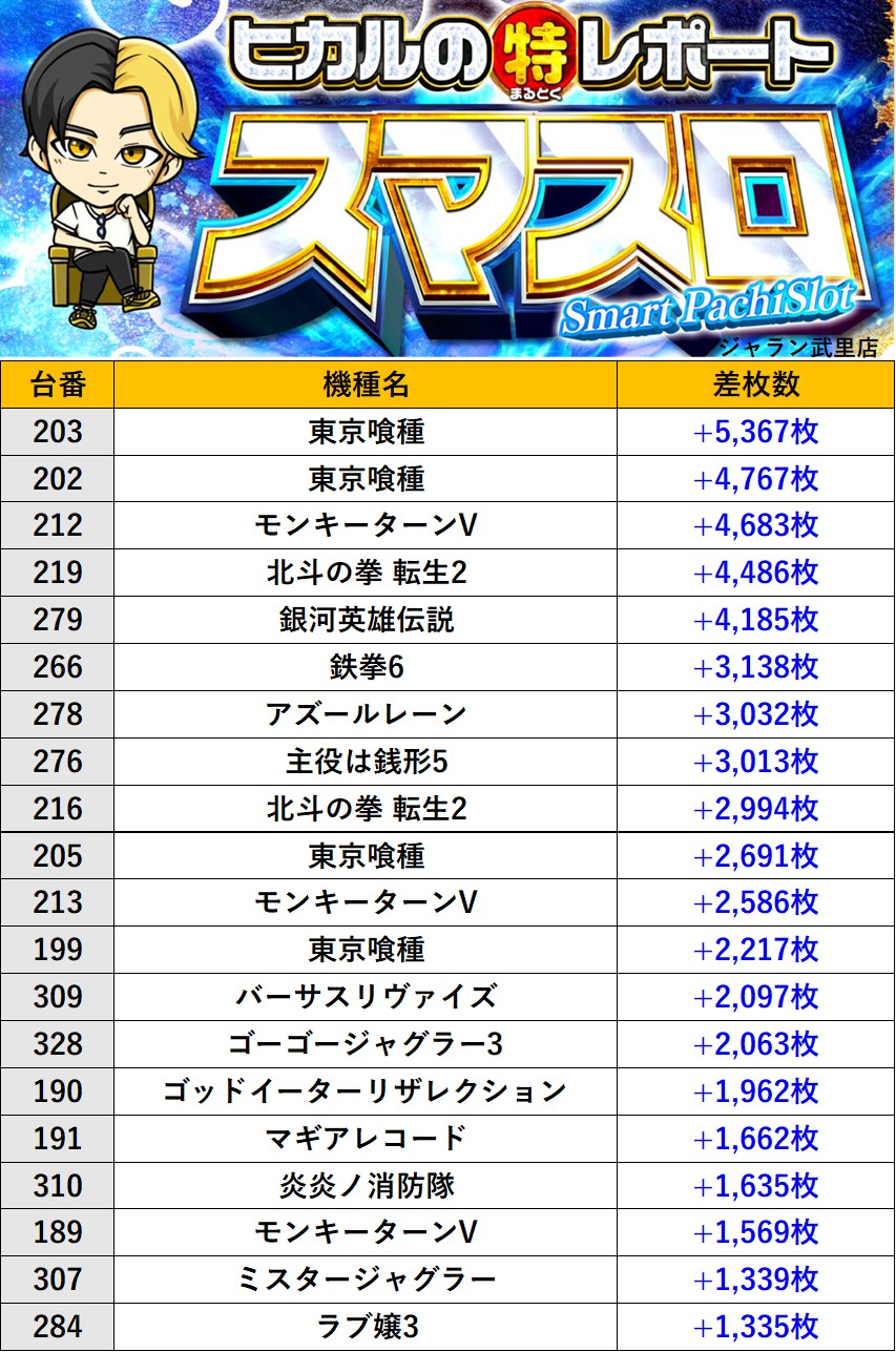埼玉ジャラン武里店 過去の取材結果はこちら 取材日 2026年2月22日(日) 並びの人数 抽選34名 / 一般46名 内容 ヒカルのまるとくレポート(スマスロ取材) ヒカルのまるとくレポートランキング Pickup箇所① Pickup箇所② Pickup箇所③ Pickup箇所④ その他Pickup箇所 過去の取材結果はこちら