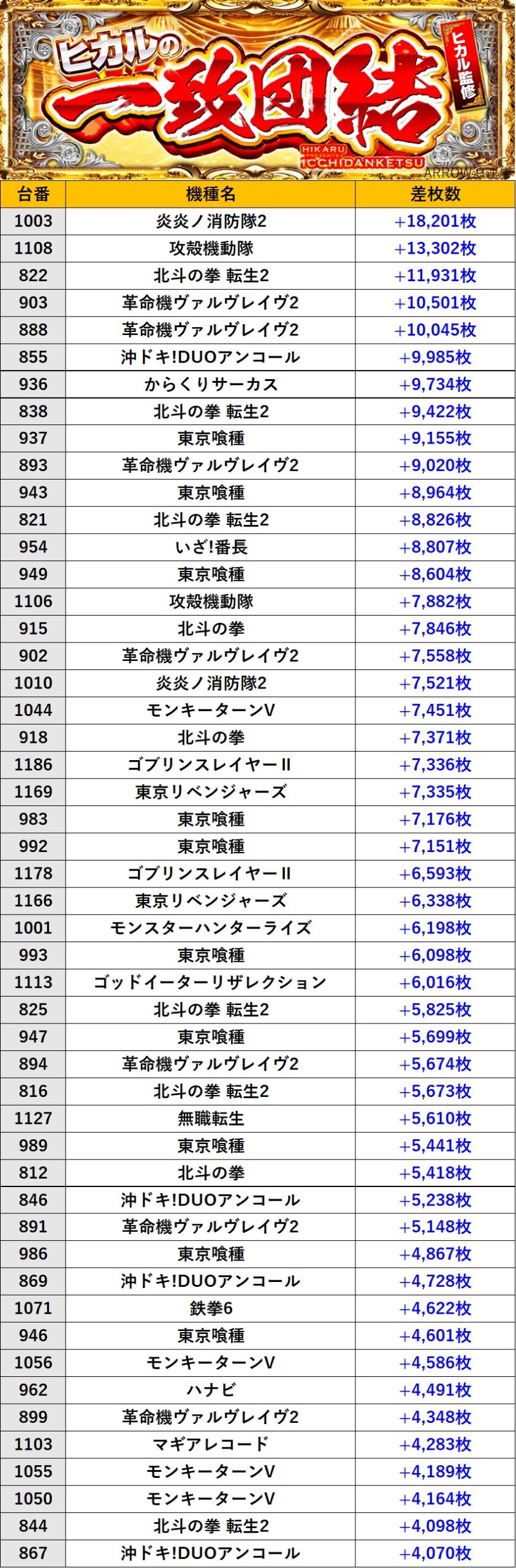 大阪ARROW浪速店 過去の取材結果はこちら 取材日 2026年3月1日(日) 並びの人数 抽選313名 / 一般52名 内容 🌓ヒカルの一致団結🌓 『ヒカルの一致団結』ランキング 過去の取材結果はこちら