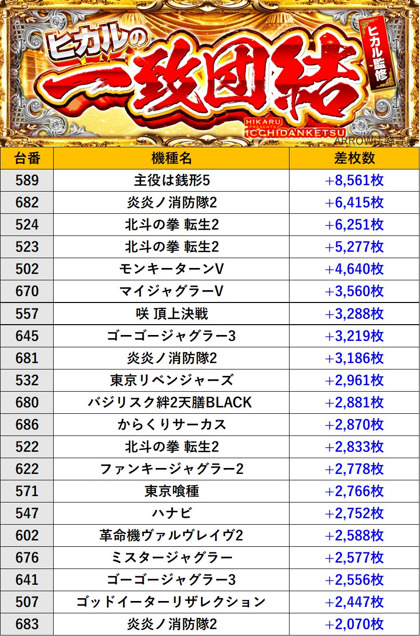 奈良ARROW法隆寺店 過去の取材結果はこちら 取材日 2026年3月1日(日) 並びの人数 抽選55名 / 一般55名 内容 🌓ヒカルの一致団結🌓 『ヒカルの一致団結』ランキング 過去の取材結果はこちら