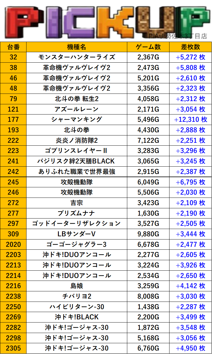 神奈川PIA伊勢佐木3丁目店 過去の取材結果はこちら 取材日 2026年3月18日(水) 並びの人数 抽選19名 / 一般51名 内容 スロミュー七福神 Pickup箇所① Pickup箇所② Pickup箇所③ Pickup箇所④ Pickup箇所⑤ その他Pickup箇所 過去の取材結果はこちら