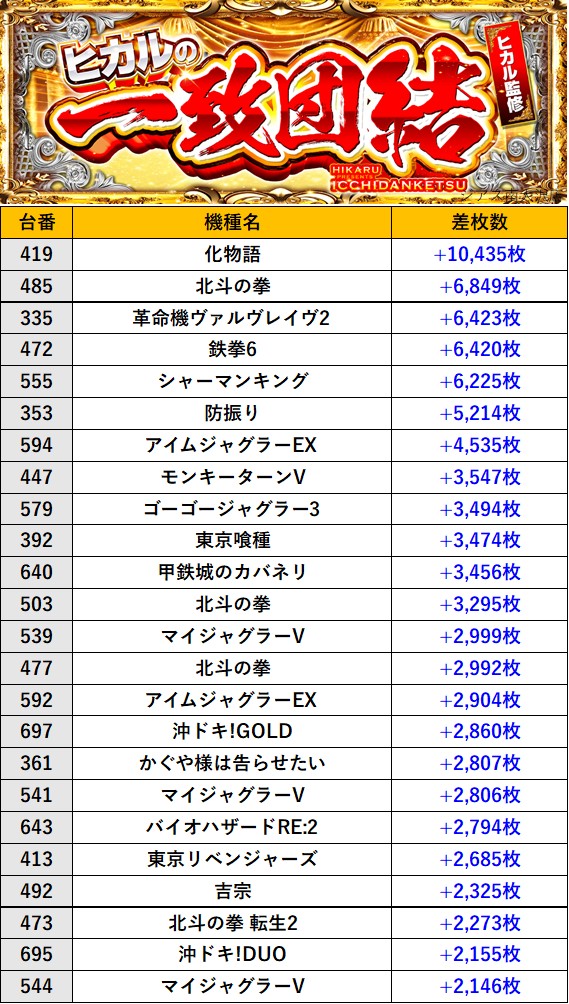 『ヒカルの一致団結』ランキング