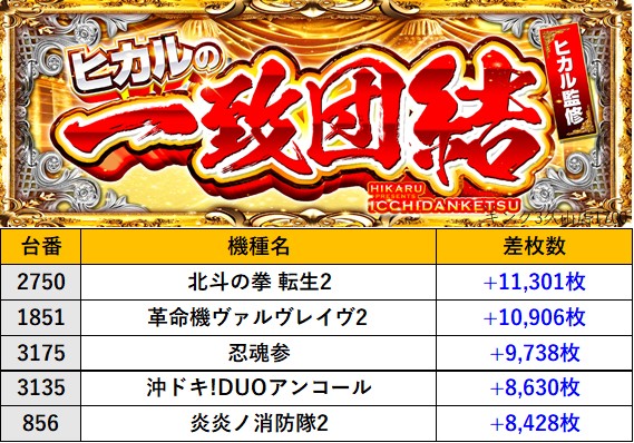 福岡キング3久山店1700 過去の取材結果はこちら 取材日 2026年3月21日(土) 並びの人数 抽選44名 / 一般95名 内容 🌓ヒカルの一致団結🌓 『ヒカルの一致団結』ランキング 過去の取材結果はこちら