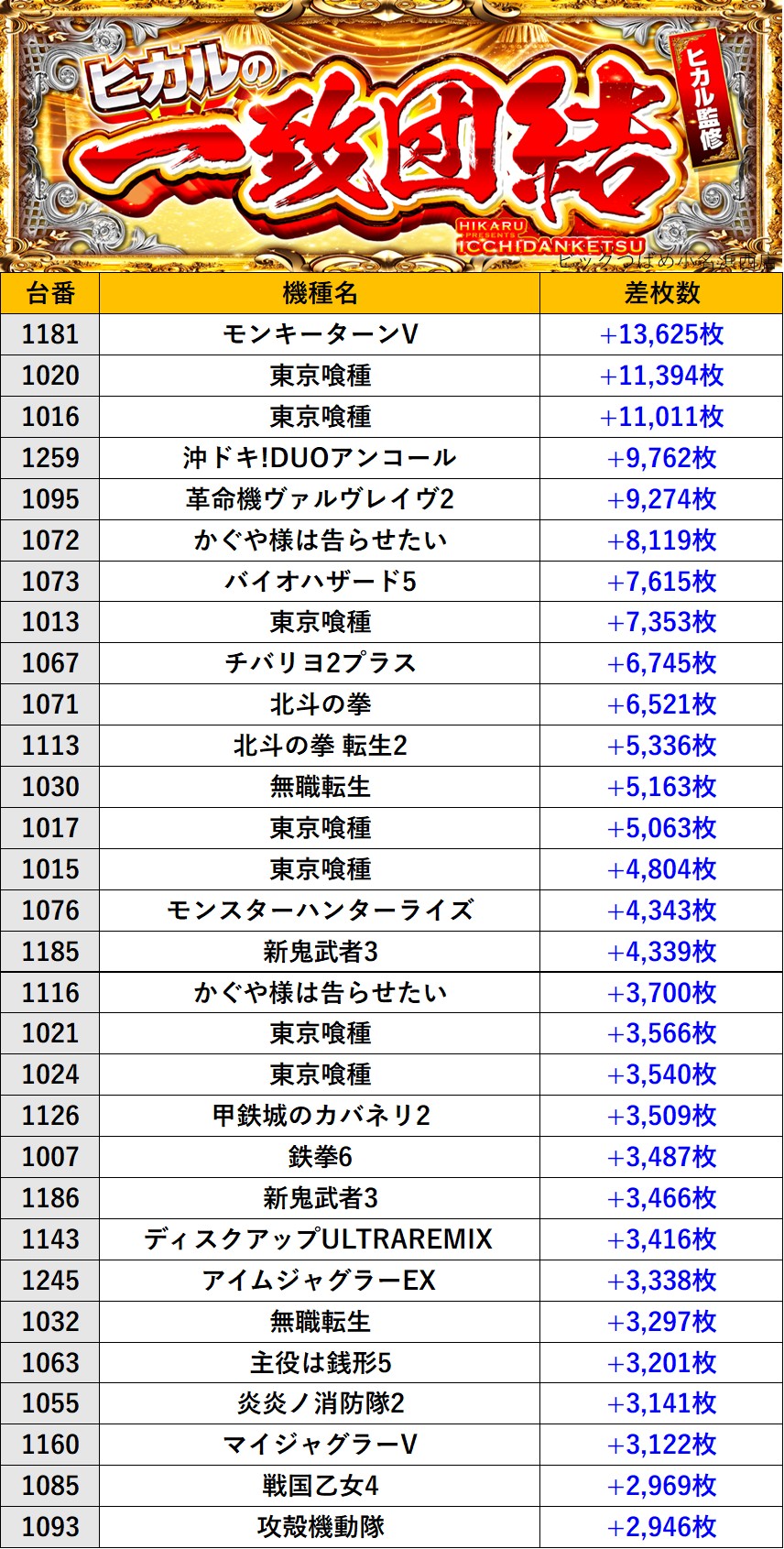 福島ビックつばめ小名浜西店 過去の取材結果はこちら 取材日 2026年3月19日(木) 並びの人数 抽選85名 / 一般20名 内容 🌓ヒカルの一致団結🌓 『ヒカルの一致団結』ランキング 過去の取材結果はこちら