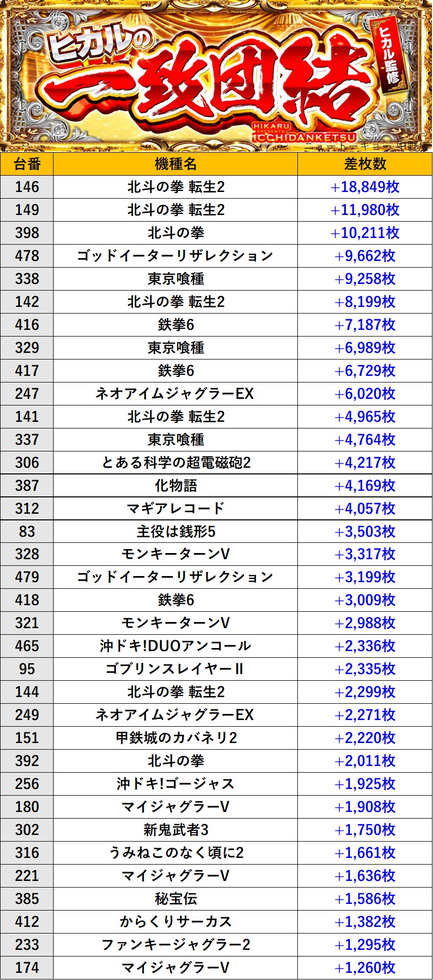 長野ニュートーキョー 中野店 過去の取材結果はこちら 取材日 2026年3月20日(金) 並びの人数 抽選40名 / 一般30名 内容 🌓ヒカルの一致団結🌓 『ヒカルの一致団結』ランキング 過去の取材結果はこちら