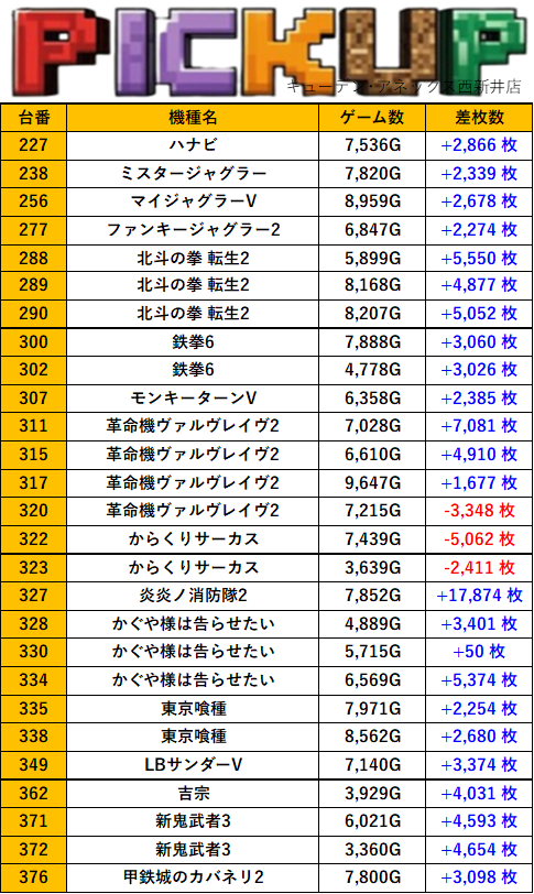 東京キューデン・アネックス西新井店 過去の取材結果はこちら 取材日 2026年3月20日(金) 並びの人数 抽選86名 / 一般25名 内容 スロミュー七福神 Pickup箇所① Pickup箇所② Pickup箇所③ Pickup箇所④ Pickup箇所⑤ Pickup箇所⑥ その他Pickup箇所 過去の取材結果はこちら