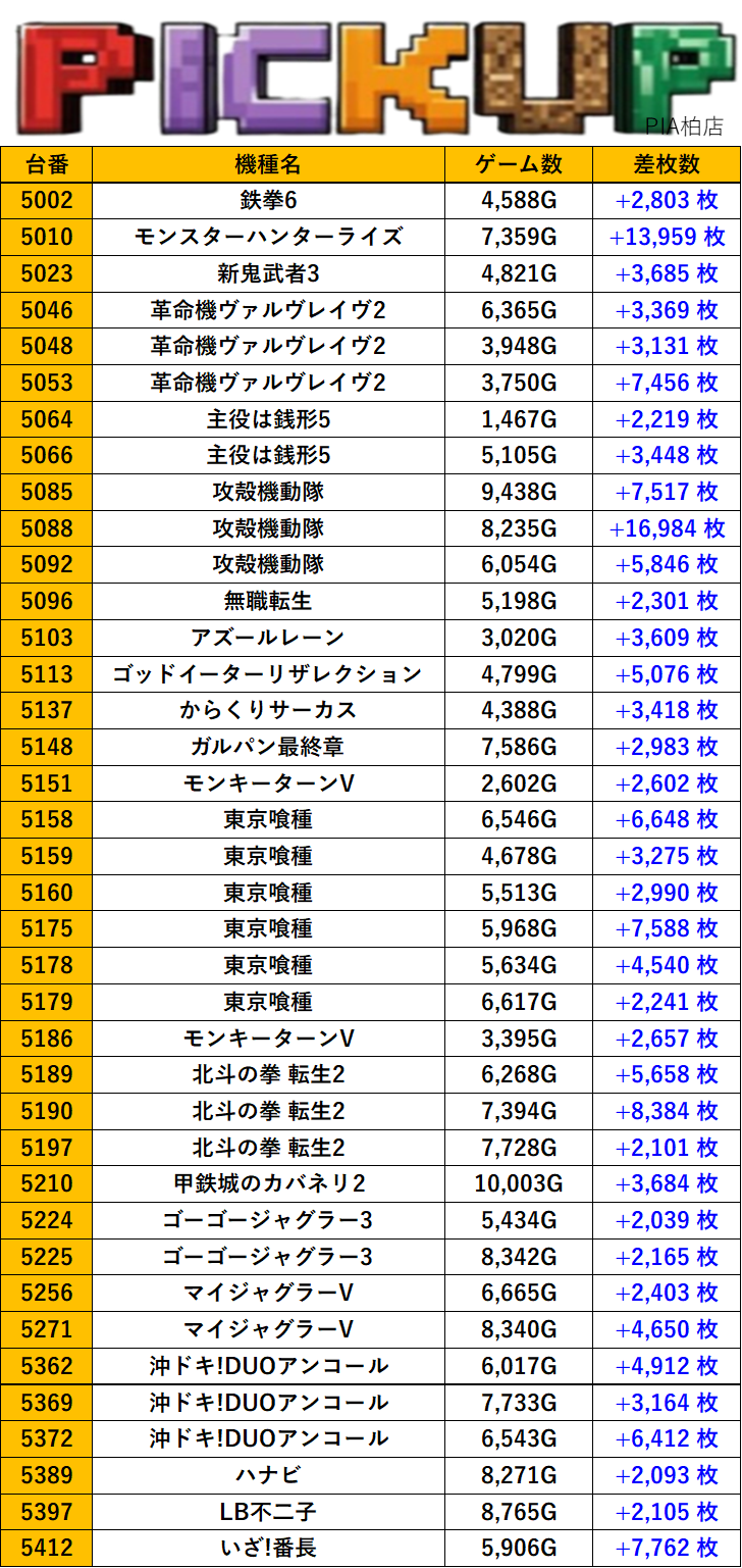 千葉PIA柏店 過去の取材結果はこちら 取材日 2026年3月20日(金) 並びの人数 抽選83名 / 一般118名 内容 スロミュー七福神 Pickup箇所① Pickup箇所② Pickup箇所③ Pickup箇所④ Pickup箇所⑤ Pickup箇所⑥ その他Pickup箇所 過去の取材結果はこちら