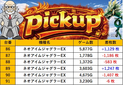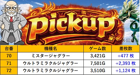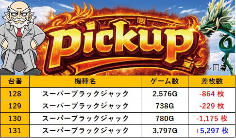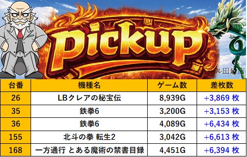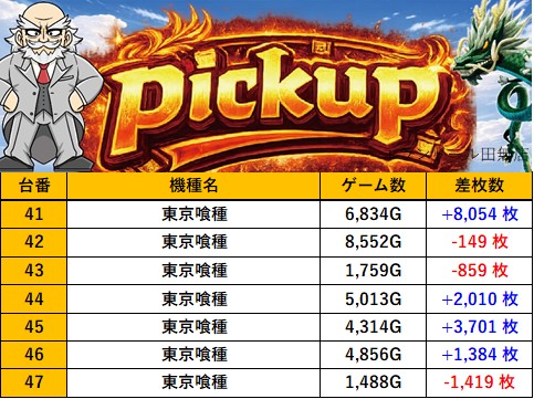 東京エランドール田無店 過去の取材結果はこちら 取材日 2026年4月4日(土) 並びの人数 抽選8名 / 一般5名 内容 スロミュー七福神 Pickup箇所① Pickup箇所② Pickup箇所③ Pickup箇所④ Pickup箇所⑤ Pickup箇所⑥ Pickup箇所⑦ Pickup箇所⑧ Pickup箇所⑨ その他Pickup箇所 過去の取材結果はこちら