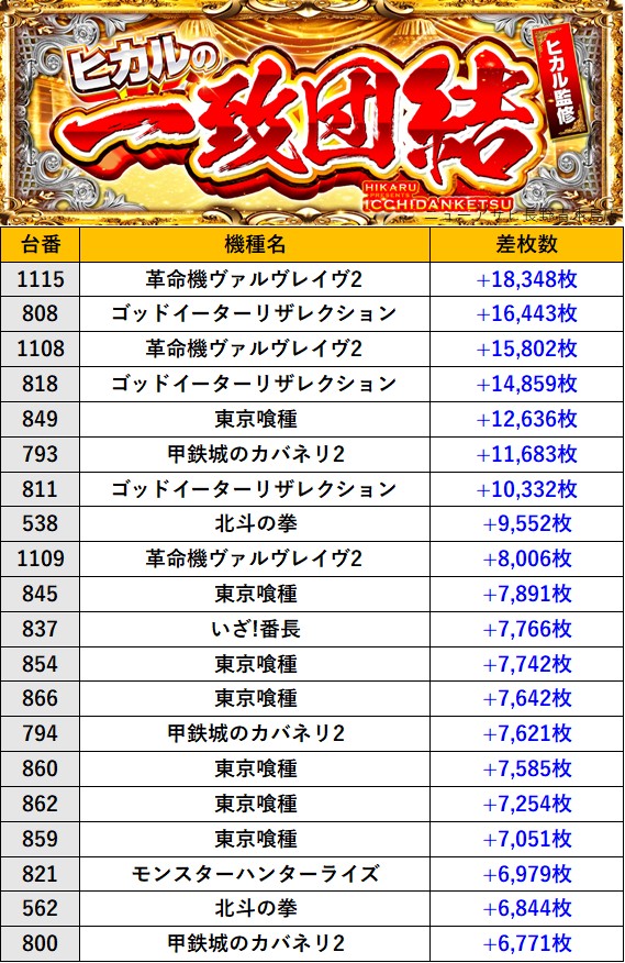 長野ニューアサヒ長野青木島店 過去の取材結果はこちら 取材日 2026年4月18日(土) 並びの人数 抽選233名 / 一般120名 内容 🌓ヒカルの一致団結🌓 『ヒカルの一致団結』ランキング 過去の取材結果はこちら