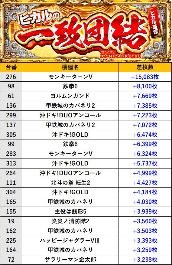 長野ニューアサヒ千曲店 過去の取材結果はこちら 取材日 2026年4月18日(土) 並びの人数 抽選48名 / 一般30名 内容 🌓ヒカルの一致団結🌓 『ヒカルの一致団結』ランキング 過去の取材結果はこちら