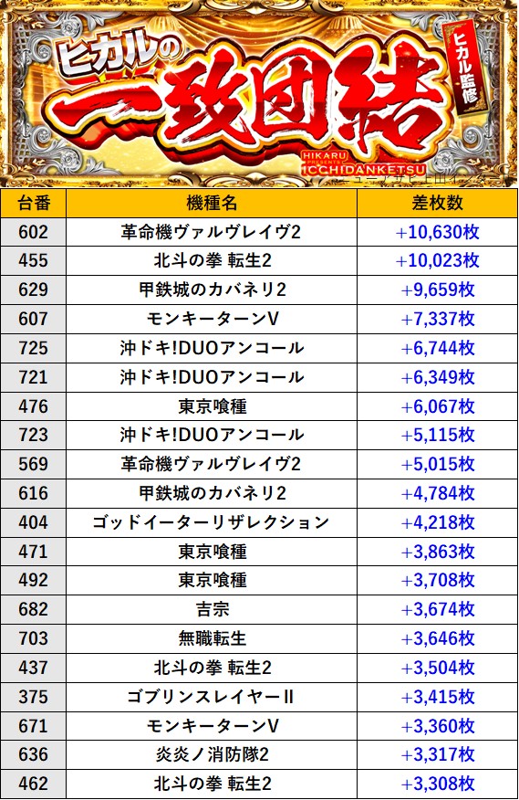 長野ニューアサヒ上田インター店 過去の取材結果はこちら 取材日 2026年4月18日(土) 並びの人数 抽選68名 / 一般63名 内容 🌓ヒカルの一致団結🌓 『ヒカルの一致団結』ランキング 過去の取材結果はこちら