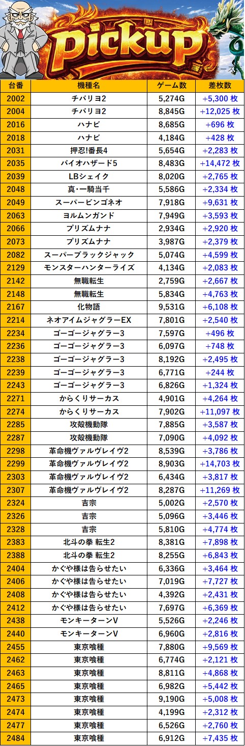 神奈川PIA横浜モアーズ店 過去の取材結果はこちら 取材日 2026年4月19日(日) 並びの人数 抽選71名 / 一般73名 内容 スロミュー七福神 Pickup箇所① Pickup箇所② Pickup箇所③ Pickup箇所④ Pickup箇所⑤ Pickup箇所⑥ Pickup箇所⑦ Pickup箇所⑧ Pickup箇所⑨ Pickup箇所⑩ Pickup箇所⑪ Pickup箇所⑫ その他Pickup箇所 過去の取材結果はこちら