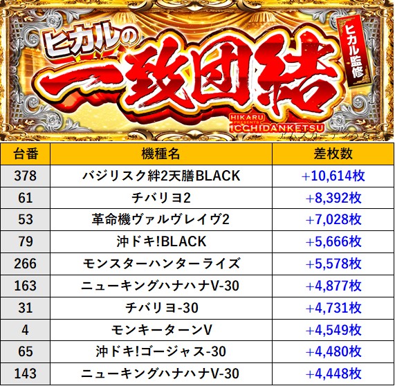 沖縄アムズガーデンうるま店 過去の取材結果はこちら 取材日 2026年4月11日(土) 並びの人数 抽選43名 / 一般30名 内容 🌓ヒカルの一致団結🌓 『ヒカルの一致団結』ランキング 過去の取材結果はこちら