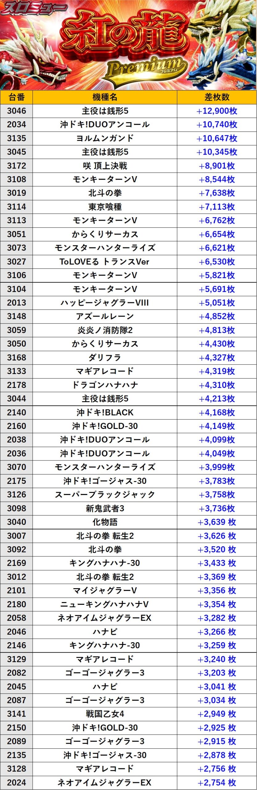 『紅の龍』ランキング