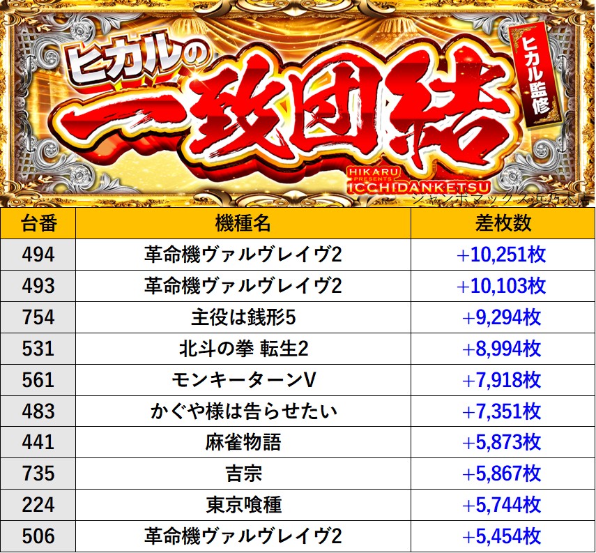 島根ジャンボマックス浜乃木店 過去の取材結果はこちら 取材日 2026年4月18日(土) 並びの人数 抽選62名 / 一般28名 内容 🌓ヒカルの一致団結🌓 『ヒカルの一致団結』ランキング 過去の取材結果はこちら