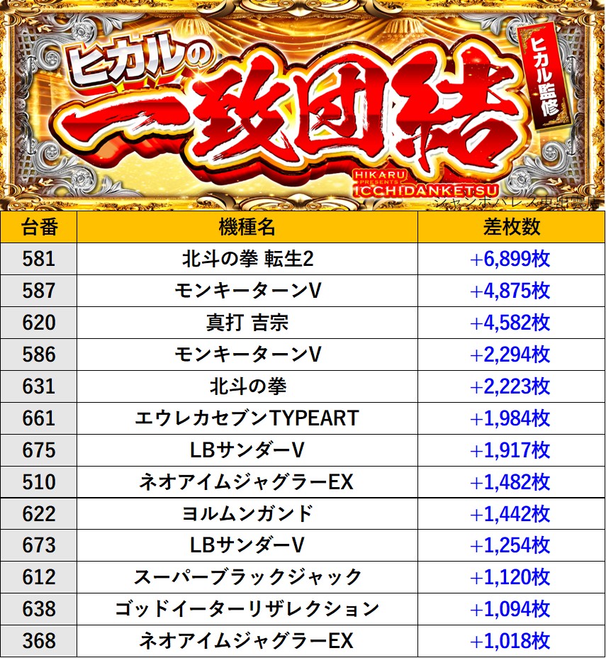 『ヒカルの一致団結』ランキング