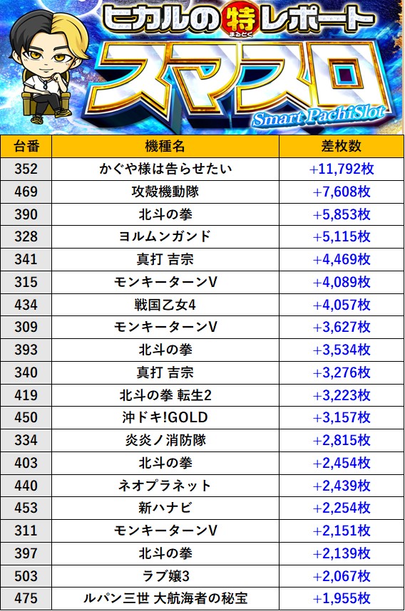 埼玉新!ガーデン桶川店 過去の取材結果はこちら 取材日 2026年4月19日(日) 並びの人数 抽選40名 / 一般20名 内容 ヒカルのまるとくレポート(スマスロ取材) ヒカルのまるとくレポートランキング Pickup箇所① Pickup箇所② その他Pickup箇所 過去の取材結果はこちら