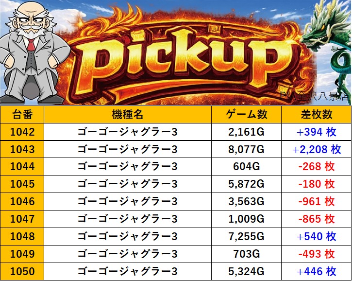 神奈川PIA金沢八景店 過去の取材結果はこちら 取材日 2026年4月17日(金) 並びの人数 抽選26名 / 一般14名 内容 スロミュー七福神 Pickup箇所① Pickup箇所② Pickup箇所③ Pickup箇所④ Pickup箇所⑤ その他Pickup箇所 過去の取材結果はこちら
