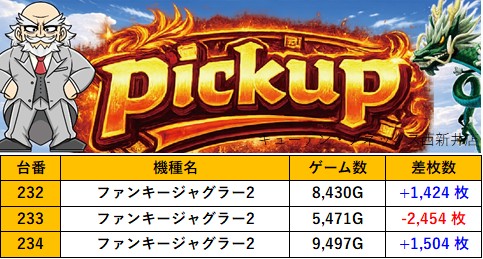 東京キューデン・アネックス西新井店 過去の取材結果はこちら 取材日 2026年4月19日(日) 並びの人数 抽選183名 / 一般13名 内容 スロミュー七福神 Pickup箇所① Pickup箇所② Pickup箇所③ Pickup箇所④ Pickup箇所⑤ その他Pickup箇所 過去の取材結果はこちら