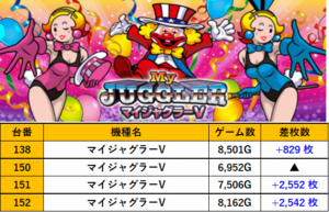 東京BBステーション日暮里店 過去の取材結果はこちら 取材日 2025年3月16日(日) 並びの人数 抽選22名 / 一般2名 内容 応援ホール 突撃福の神 マル特レポート スロミューマル特レポートTOP5 マイジャグラーV Lモンスターハンターライズ アイムジャグラーEX ジャグラーガールズ Pickup箇所 過去の取材結果はこちら