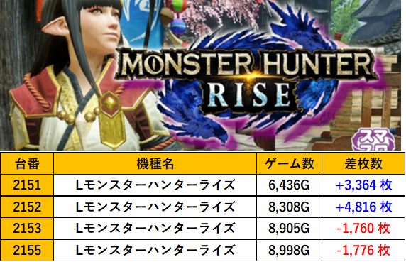東京ヒロキ東口店 過去の取材結果はこちら 取材日 2025年4月5日(土) 並びの人数 抽選45名 / 一般102名 内容 スロミュー七福神 応援ホール Lモンスターハンターライズ ミスタージャグラー 新鬼武者2 Lスーパーブラックジャック Pickup箇所 過去の取材結果はこちら