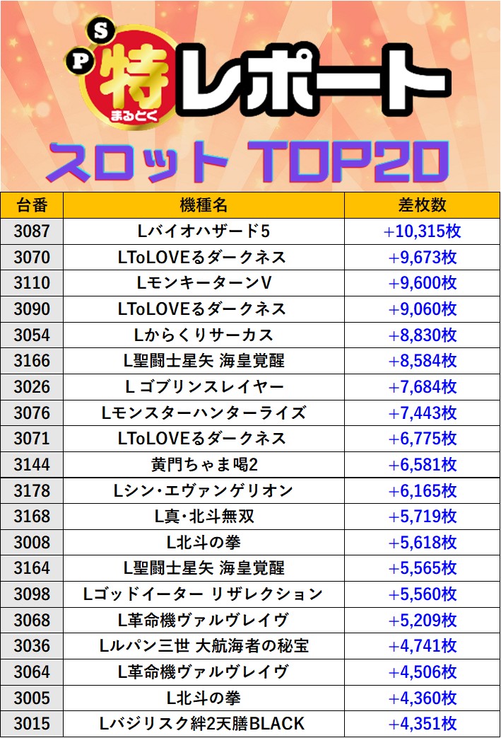 スロミューマル特レポートTOP20